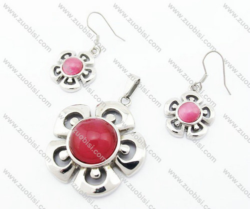 Carbuncle Stainless Steel Flower Jewelry Set JS410037